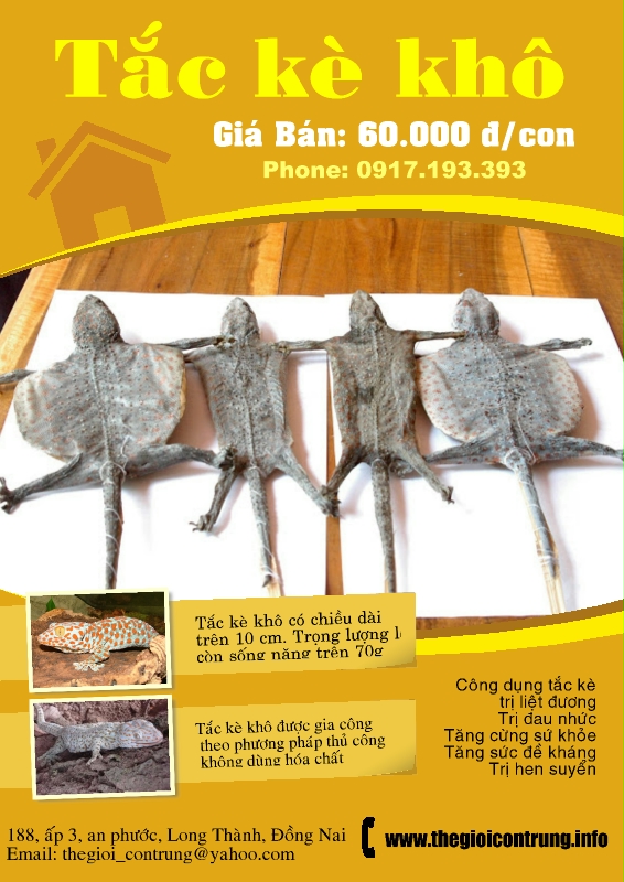 Điển hình là tắc kè giờ đã được nhiều nước trên thế giới bào chế thành các các dược li