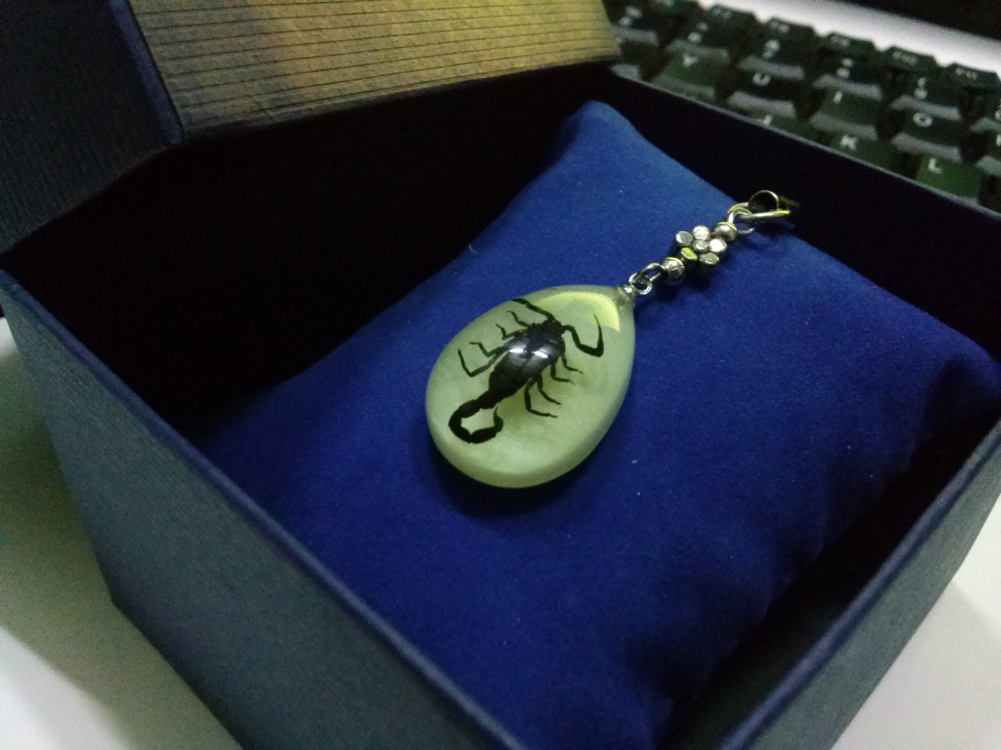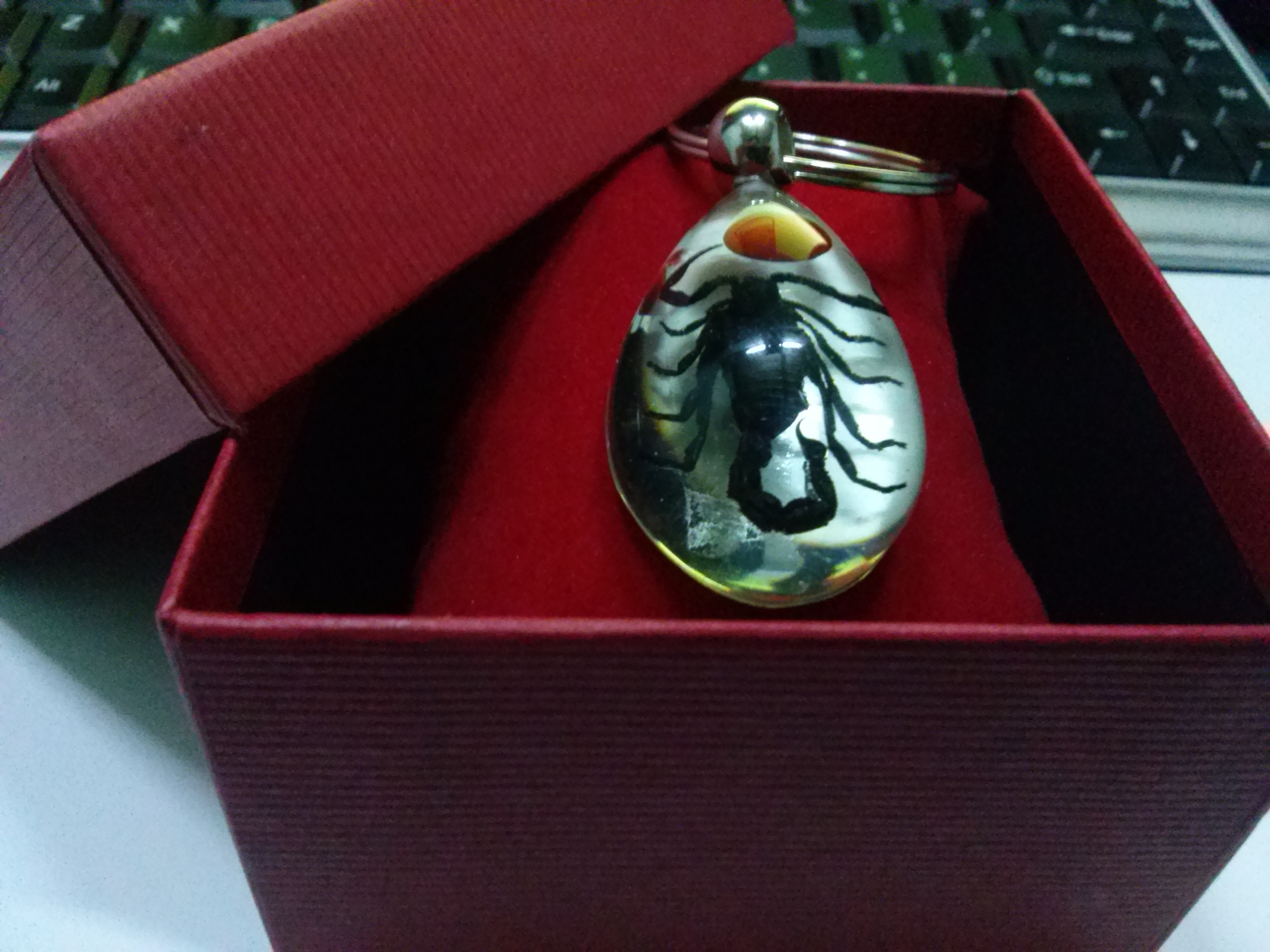 Móc khóa hổ phách bọ cạp đen